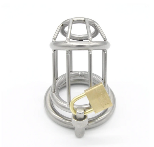 Metal Male Small Chastity Cage with Adjustable Spiked Ring Lock