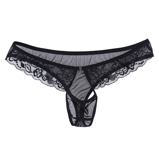Mens Crotchless Thong Sissy See-through Lace Low Waist Briefs For Crossdresser