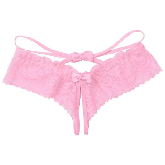 Elegant Gay Men's Sissy Panties: See-Through Mesh Lace Thongs with Bowknot Detail, Open Crotch Jockstrap, and Chic Bikini Underwear Cover