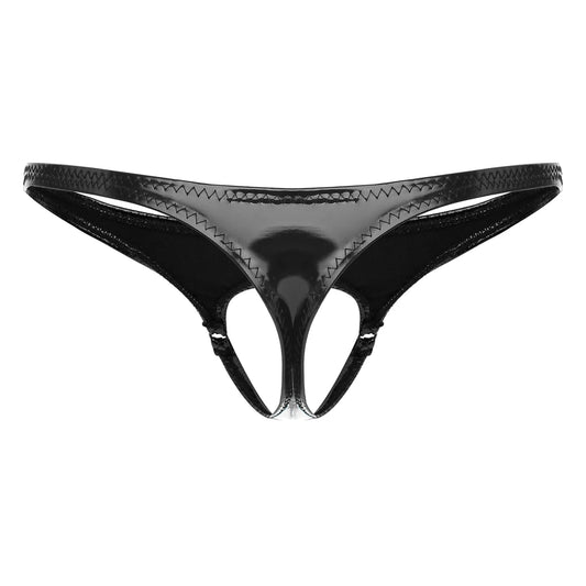 Mens Low Rise G-String Briefs Sexy Thong Underwear Wet Look Patent Leather Panties