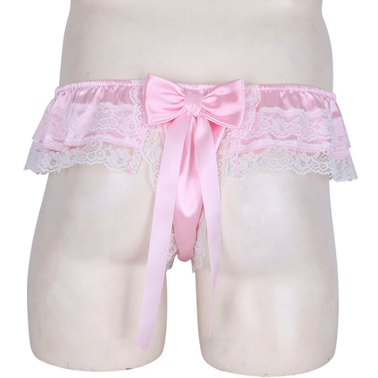 Mens Silky Satin Panties Sissy Lingerie Ruffle Lace Bowknot Briefs