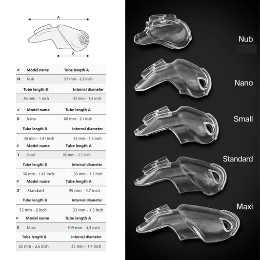 Nub Size Transparent HT-V5 Male Chastity Cage - Lightweight Resin, Latest Button Lock with Exclusive Keys