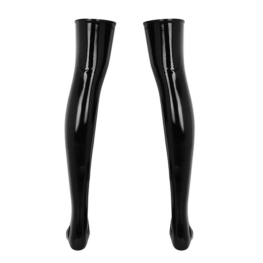 Sissy Mens Anti-skid Soft Elasticity Wetlook PU Leather Thigh-High Stockings