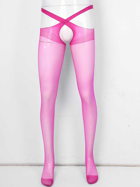 Men's Sissy Lingerie: Sexy See-Through Pantyhose, Open Crotch Hollow Out Tights, Stretchy Cross Underwear Trousers for Gay Styles