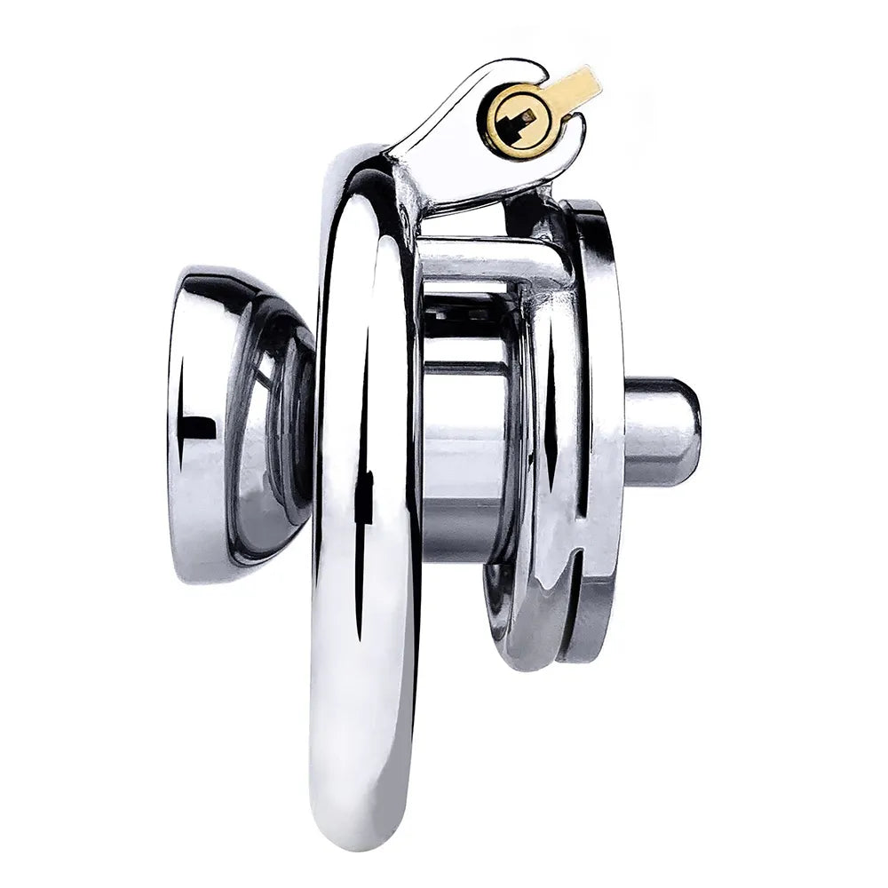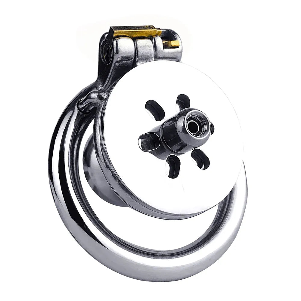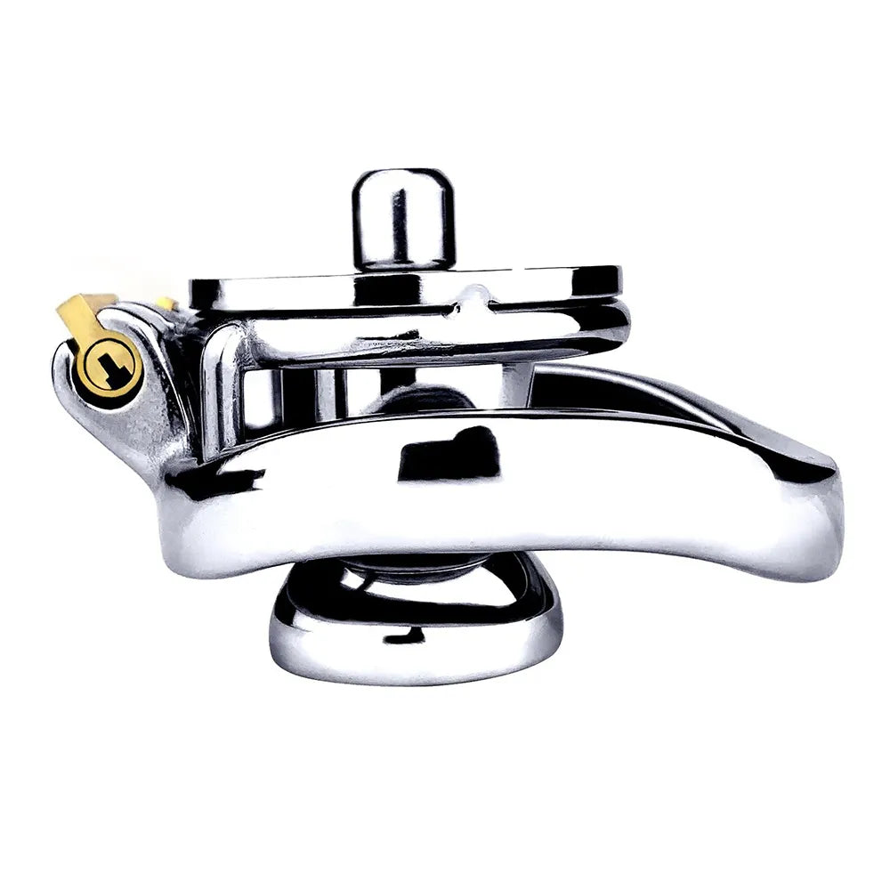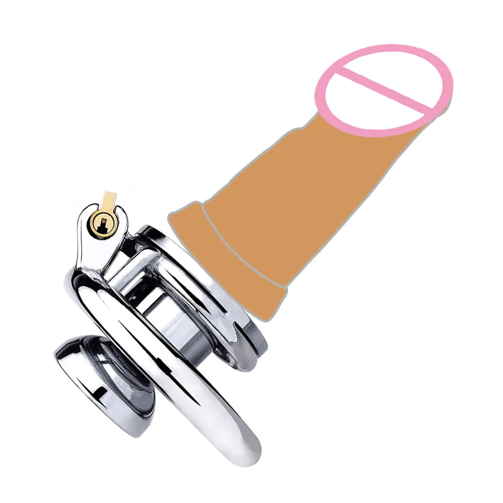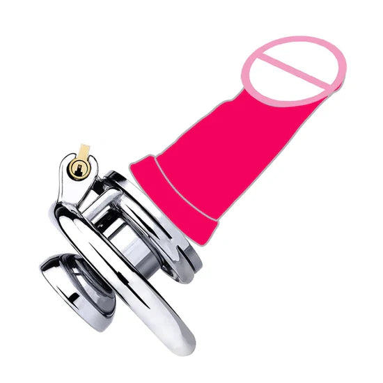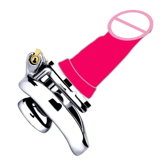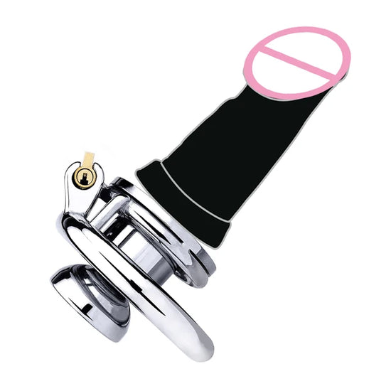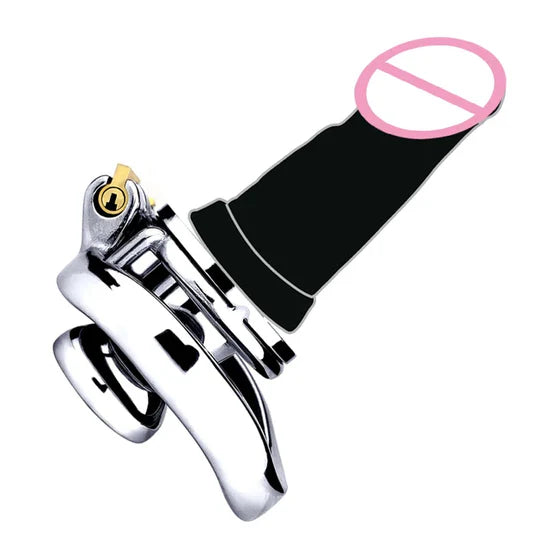 This Flat Inverted Chastity Cage with Large Size Dildo is a high-quality metal chastity device designed with comfort and security in mind.