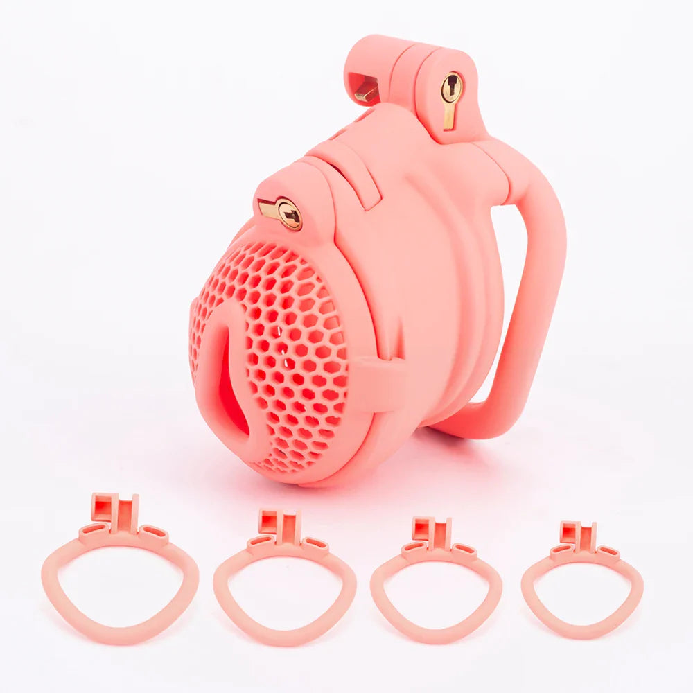 Unlock new levels of control and pleasure with our Honeycomb Slide Male Chastity Cage, designed for a snug and secure fit with adjustable glans and scrotum rings, perfect for elevating your CBT play.