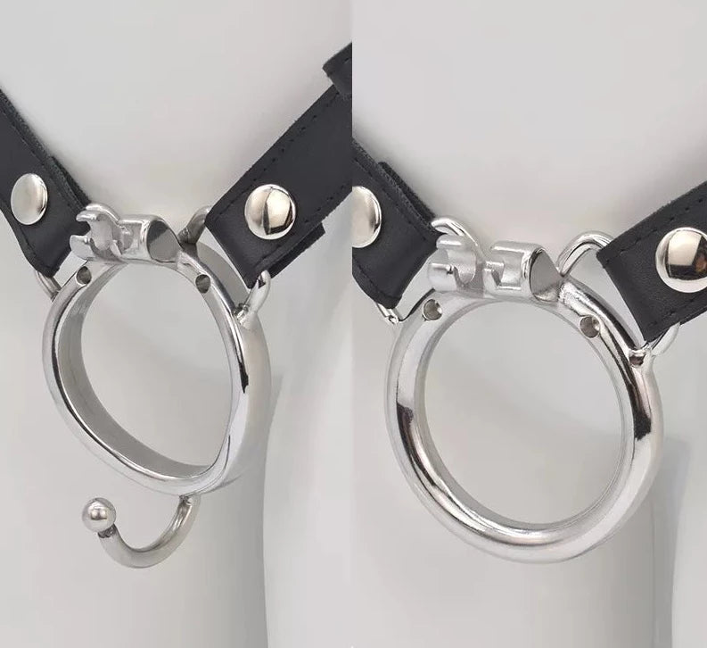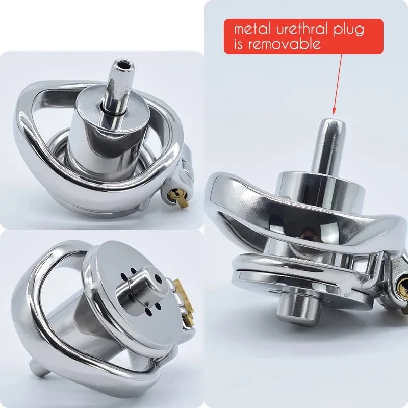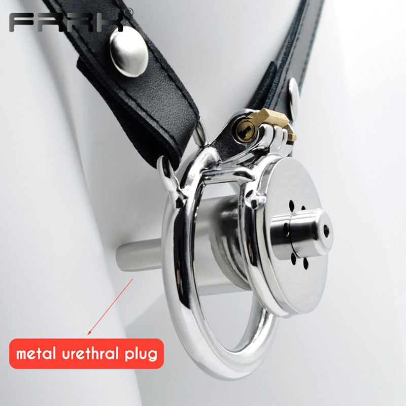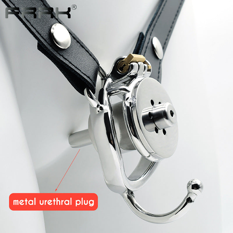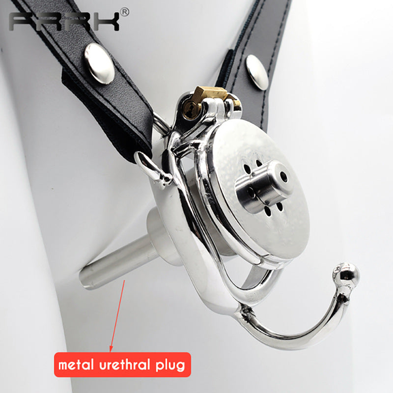 Inverted Chastity Cage with Strap and Metal Catheter