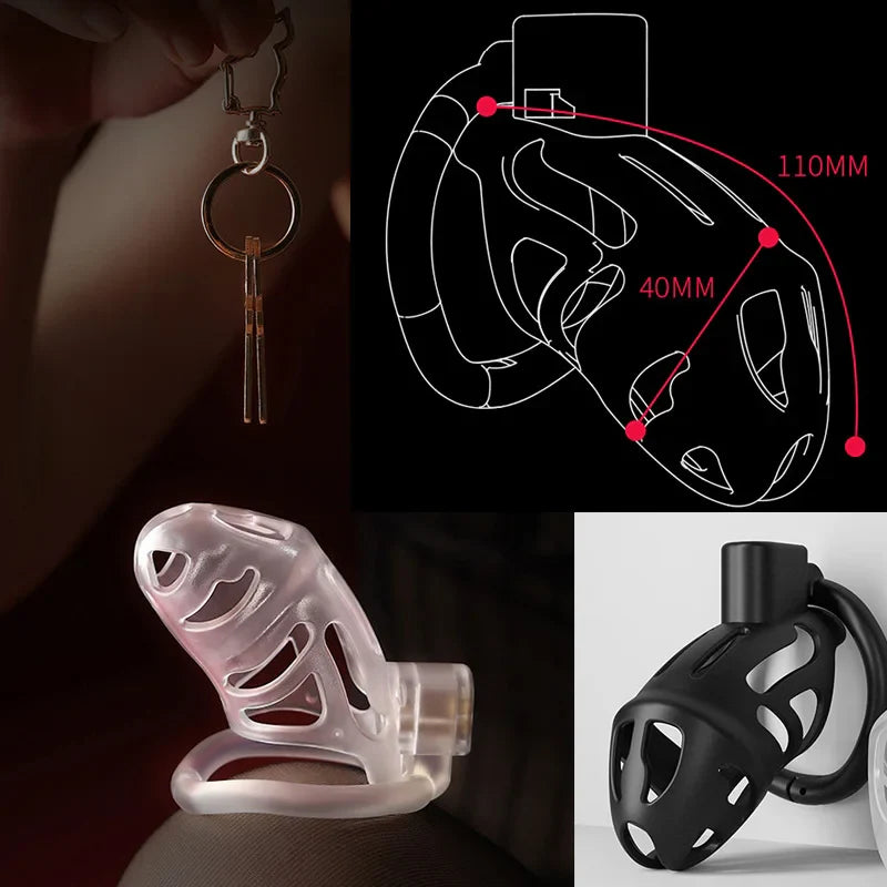 Premium Male Chastity Device Cock Cage 3D Lightweight with Curved Penis Ring & Bondage Belt Combo