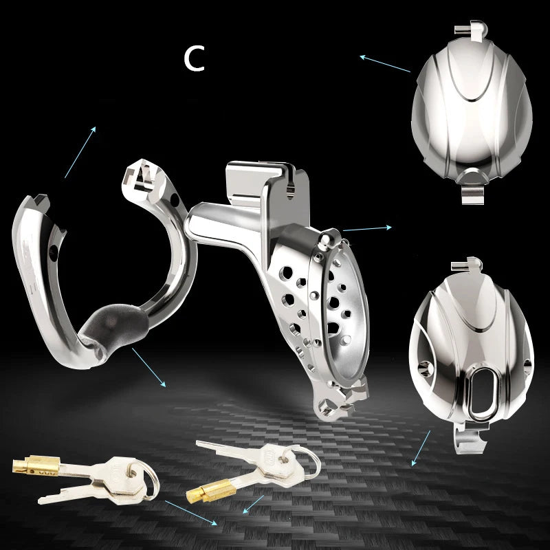 The whole set includes: 1 cage, 1 hat, 1 ring, 2 built-in locks and 4 keys, 1 zipper bag.