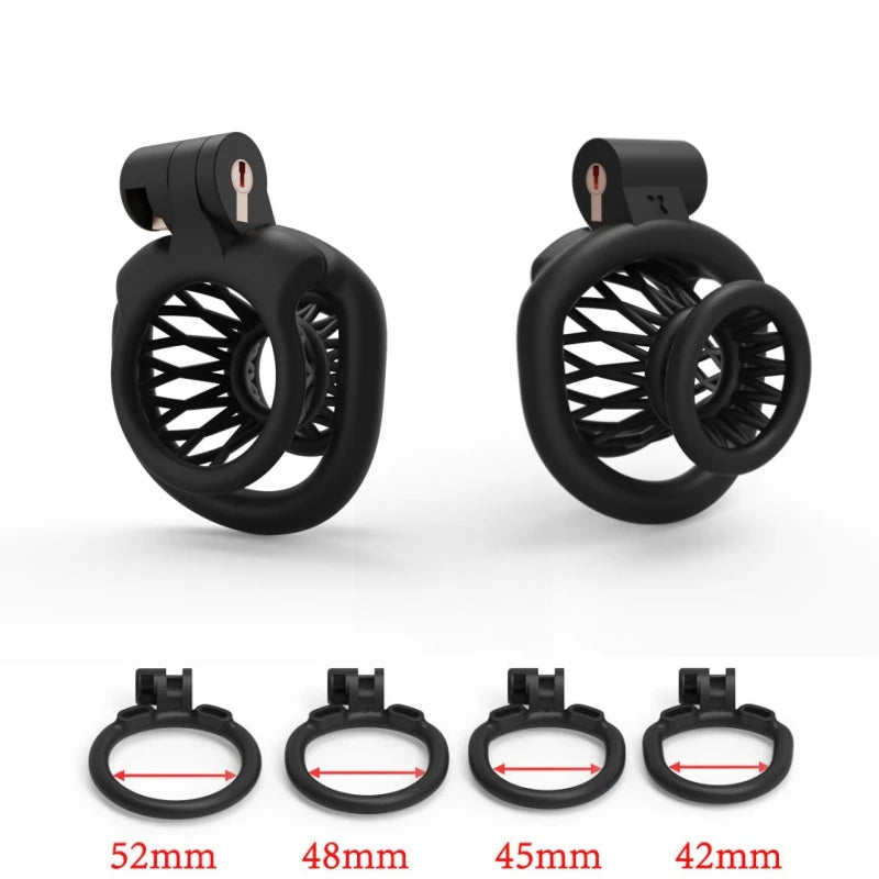 Small Inverted Chastity Cage for Men Lightweight Sissy Cock Lock with 4 Size Penis Rings