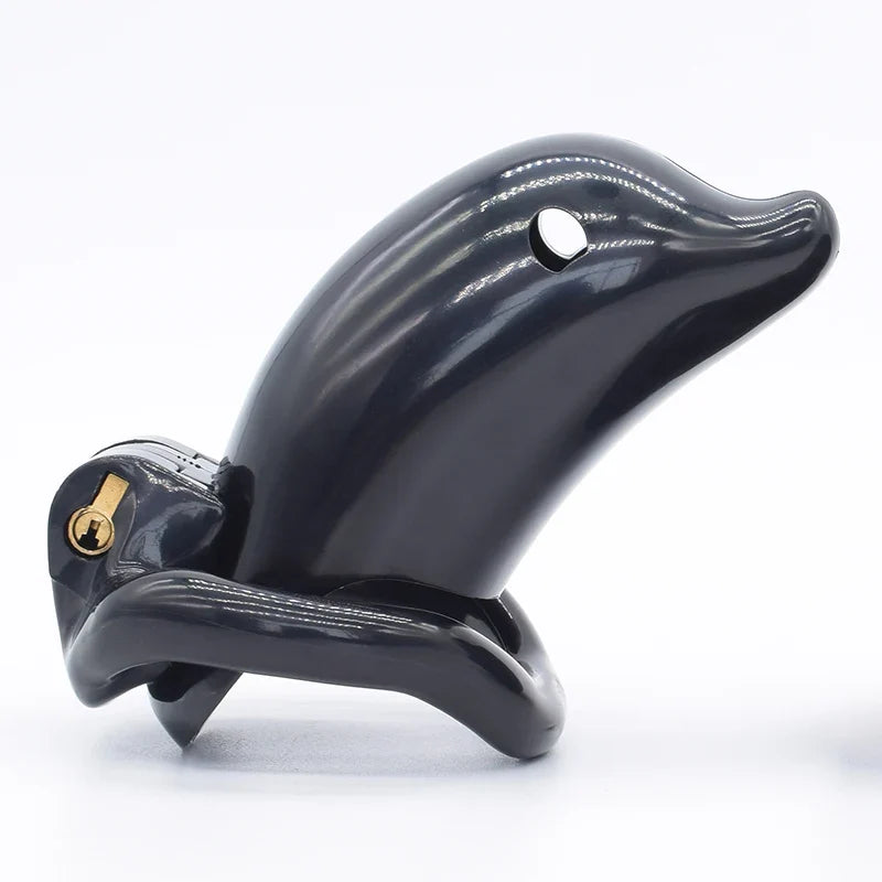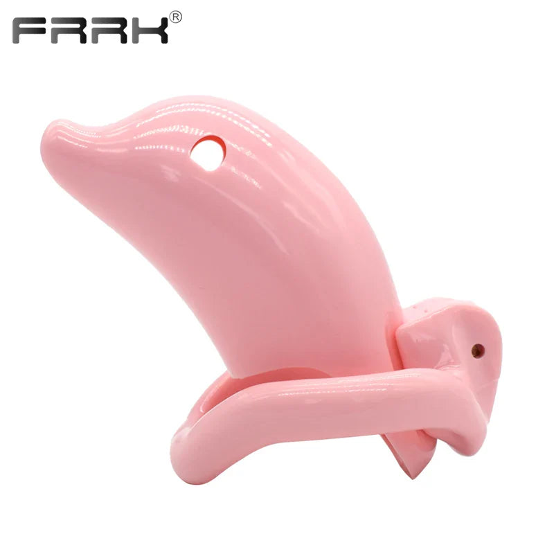 Small Negative Chastity Cage with Dolphin Design: FRRK's Discreet ABS Male Intimacy Device with 4 Rings