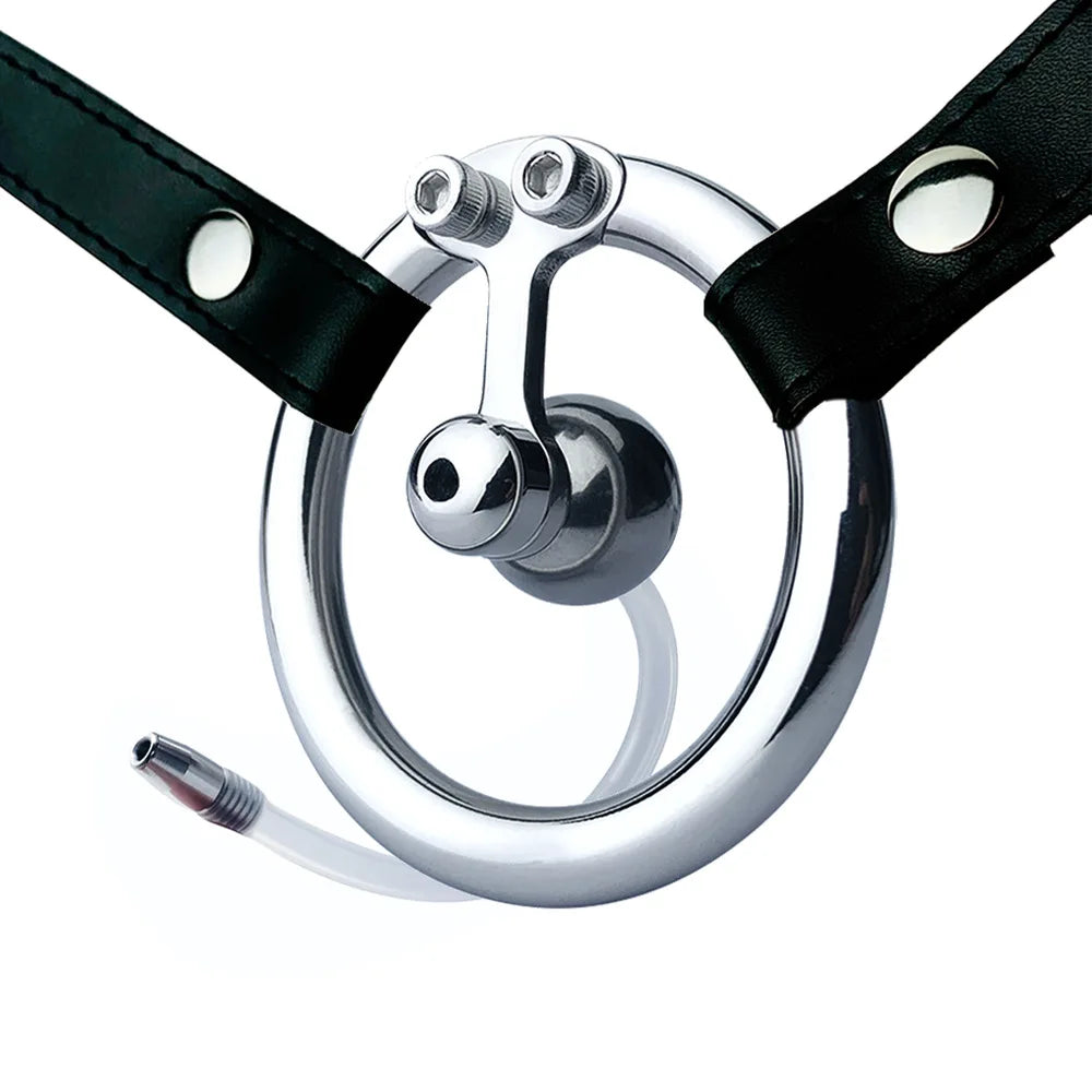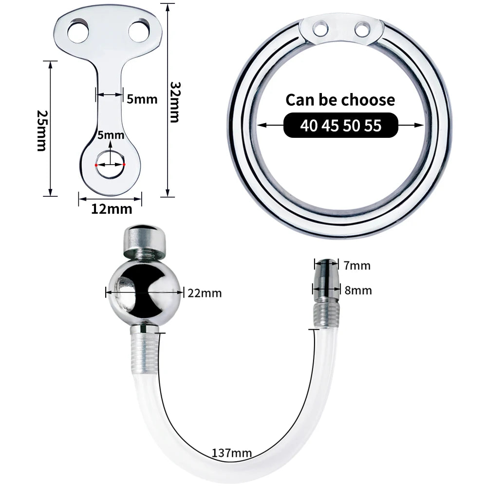 Super Mini Inverted Cock Cage with Removable Metal Bar/ Solid Ball/ Silicone Urinal Tube